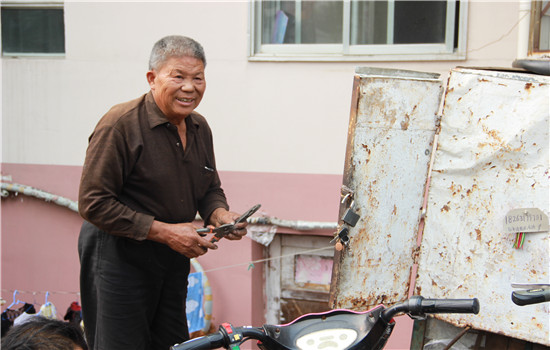 剛來威海的時候租的房子離修車攤有一條街的距離,他說看著來修車的人越來越多,來回走路會耽誤修車的時間,索性他和老伴就搬到修車攤旁邊居住,沒想到這一住就是二十四年,這一修就是二十四年。李人民說他就像他的名字一樣為人民服務,他是這樣說的,更是這樣做的。在他的修車攤前,來來往往很多人,他說車就是他們的交通工具,上面載著的是個人,是一條生命,要是車不好,出事了那是一條命,修好了別人騎著,他心里才踏實,看著他們把車趕走的背影,他心里都是滿足的。
