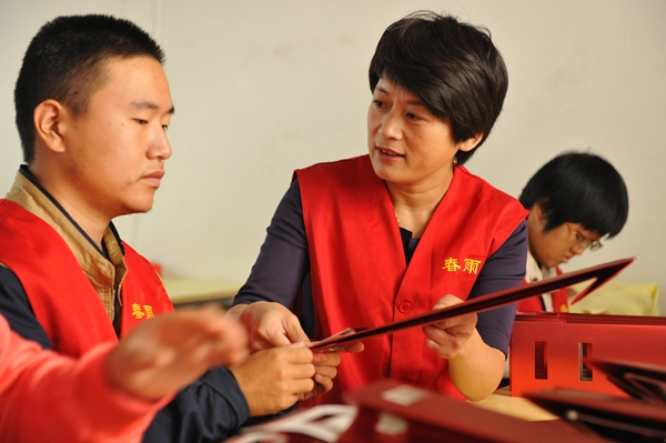 2014年12月,在青島市殘聯(lián)、市北區(qū)殘聯(lián)的大力支持下,崔永蘭著手注冊(cè)創(chuàng)建市北區(qū)春雨殘疾人輔助性就業(yè)中心,2015年4月,中心成立開(kāi)始招聘以智力、精神障礙為主并且有一定工作能力的殘疾人員。
