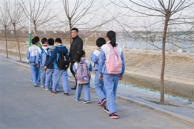 下午17點(diǎn)30分,部分學(xué)生家長下班后陸續(xù)來到學(xué)校,將孩子接回家,張?jiān)谘缶蛶е嘞碌谋敬宓?個(gè)孩子踏上了回家的路。