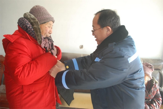 2009年初,張宗卿擔任大義交管所所長。在巡查轄區(qū)農(nóng)村公路時,張宗卿發(fā)現(xiàn)牛河村有一位年邁的老太太經(jīng)常斜臥在路邊,精神疲憊,衣衫破舊。后經(jīng)過了解,老太太姓牛,已經(jīng)104歲了,大兒子已去世,小兒子也70多了,體弱多病,家庭特別困難,目前還住著土房。得知這一情況后,張宗卿決定給牛氏老太太一定的幫助,他發(fā)動全所干部職工捐款為這位百歲奉獻愛心。2009年5月份的一天上午,正值百歲老人的生日,張宗卿帶領全所人員來到老人家中,為老人帶去了面粉、食用油、點心和一幅裝裱好的“壽”字書法作品,并為老人送去500元慰問金。老人激動得熱淚盈眶,連說:“您們真好,您們真好!”從那以后,大義交管所和牛氏老人結(jié)成幫扶對子,經(jīng)常到老人家中走訪,噓寒問暖,并幫忙干些農(nóng)活,直到老人去世。
