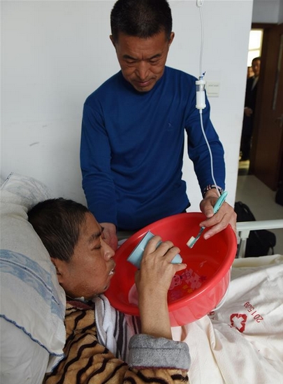 邵新運只說了一個“行”字,便辭去工作,輾轉1800多公里,坐火車只身來到鷹潭,開始了替兒子盡孝,照顧病重親家公的特護生活。
