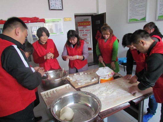 房崇萍及志愿者一起為困難戶包水餃