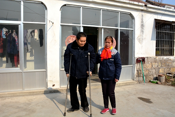 1988年12月,栗廣美與丈夫李政家結(jié)婚,婚后生活清貧但充滿溫馨。天有不測風(fēng)云,剛結(jié)婚不到半年的李政家被確診患上了類風(fēng)濕關(guān)節(jié)炎,而此時(shí)栗廣美已有五個(gè)月身孕。2000年,李政家被確診為股骨頭壞死、強(qiáng)直性脊柱炎,徹底失去了自理能力。生活的重?fù)?dān)一下子全部壓在了栗廣美一個(gè)人的身上。只要聽說哪兒能掙錢了,只要栗廣美能干的,她都去。去街口賣菜煎餅、去開發(fā)區(qū)卸磚卸沙卸水泥、跟著建筑隊(duì)遞磚鋤灰篩沙、在包裝廠做打包帶、在家具廠干包裝……夜班下班后睡上兩三個(gè)小時(shí),第二天白天再接著去開發(fā)區(qū)打零工。干完活兒就找個(gè)地兒隨便一靠打個(gè)盹兒,再接著干下一個(gè)活兒。“我在哪兒干他們都開給我高工資,很多男勞力干活都不如我,我肯出力,那時(shí)候工錢開給他們18(塊),給我20(塊)(一天),”說起這些,要強(qiáng)的栗廣美臉上滿滿的驕傲。