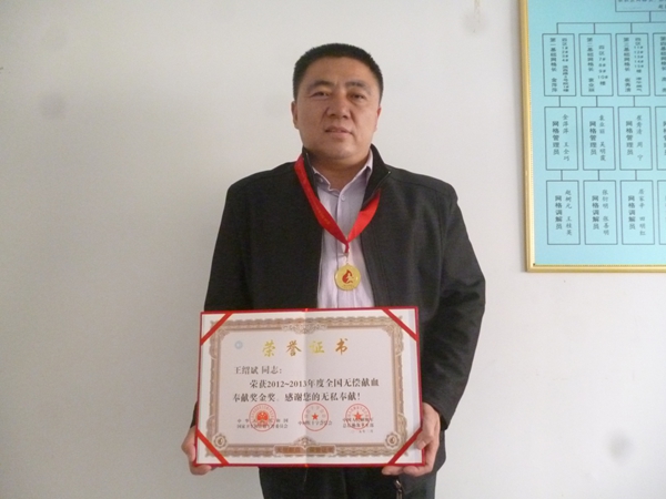 15年來獻血147次(全血34次,獻血小板113次,合計無償獻血量29400毫升,他的中國夢是“救更多的人,獻更多的血”。2012年榮獲全國無償獻血奉獻獎銅獎,2015年榮獲全國無償獻血奉獻獎金獎。山東工人報、濟南日報、山東商報、生活日報、歷城報以及歷城電視臺均報道了他獻血的事跡。