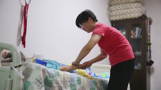 親情是人最原始的情感,最基本的美德。孝順不是轟轟烈烈做給別人看的,而是滲透到生活中的點點滴滴。郎合珍組建了自己的小家庭后,夫妻和睦,孝順公婆,是公認的好媳婦。“親有疾,晝夜侍,不離床”。2013年一場意外的醫療事故,婆婆陷入重度昏迷成了植物人,老人躺在床上不能動彈,大小便失禁,意識不清。在婆婆病情最嚴重的那段日子里,郎合珍與家人各地輾轉尋醫求治,老人終究沒有恢復,她也瘦脫了形。為了照顧婆婆,她學會了很多專業護理技能。每兩、三個小時就翻身、拍背、按摩四肢,護理氣管切口,刷牙、洗臉,清理便溺、換洗尿布、床單被褥,這對于郎合珍而言不過是四年來再平常不過的事了。一天幾頓飯,婆婆只能吃流食,她就學習營養搭配,悉心將水果、米粥、瘦肉壓成汁,用紗布過濾后裝進注射器,一點點打進胃管里,維持著老人的生命。每天郎合珍都會為婆婆擦拭身體,照料婆婆無微不至。老人不能自主呼吸,氣管切開后痰特別多,晚上她與丈夫輪流值班,時時警醒著幫助老人吸痰。“對我和丈夫來說,媽媽就是一種精神寄托。只要她在一天,就盡一天孝。”她時常這樣說。家庭是什么,是人世間最可信賴的社會細胞。四年多來,1500多個日日夜夜,郎合珍意志沒有垮、孝心沒有變、責任沒有失,也喚醒了許多人在這紛雜時代中對內心情感最深處的拷問。這種中華民族樸素而真摯的人性之美,可以作為社會的良藥。郎合珍付出的孝心,不僅撫慰了丈夫、親人,也感動著每一位知悉情況的鄰里、朋友、同事。