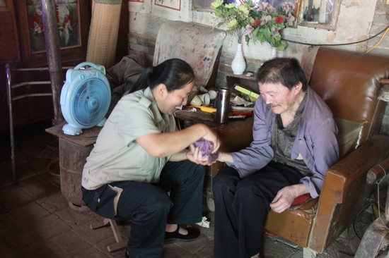 唐風(fēng)琴的公公患有偏癱40余年,日常生活起居必須有人全程照顧;其婆婆年老并且身體患有高血壓等多種疾病,也需要照顧;她丈夫忙于工作,早出晚歸,無(wú)暇顧家;這一切導(dǎo)致了照顧兩位老人,尤其是公公的重?fù)?dān)就落在唐風(fēng)琴身上。未到郵政參加工作之前,唐風(fēng)琴除了日常農(nóng)忙時(shí)間外,都一直陪伴在兩位老人身邊,不管何時(shí),總是隨叫隨到。參加工作以后,唐風(fēng)琴每天早晨不到6點(diǎn)就起床,為兩位老人準(zhǔn)備早飯,協(xié)助公公起床洗漱,照顧公公吃完早飯后自己才匆匆吃一點(diǎn),確保8點(diǎn)之前到達(dá)營(yíng)業(yè)網(wǎng)點(diǎn)上班;中午12點(diǎn)下班后,匆忙趕回家,準(zhǔn)備午飯、照顧公公吃飯;晚上下班后趕緊回家做晚飯;等全家吃完晚飯,她才有時(shí)間洗全家的衣服;她晚上10點(diǎn)之前從未睡覺(jué)過(guò);每日如此,從未間斷。因?yàn)楣脒吷頉](méi)有知覺(jué),所以她還經(jīng)常性幫助公公活動(dòng)筋骨,揉揉麻木的身體。也正是因?yàn)楣脒吷眢w沒(méi)有知覺(jué),有一次,腿離暖爐太近,導(dǎo)致被燙紅,唐風(fēng)琴在給公公按摩時(shí)才發(fā)現(xiàn),在給公公上藥的時(shí)候,邊流淚邊自責(zé),覺(jué)得是自己照顧不周才導(dǎo)致燙傷,并為此愧疚很長(zhǎng)時(shí)間。從那以后,雖然她離家上班,但總是電話提醒婆婆多留心,避免此類問(wèn)題的再次發(fā)生。也正是唐風(fēng)琴如此用心,其公公再未出現(xiàn)類似情況。