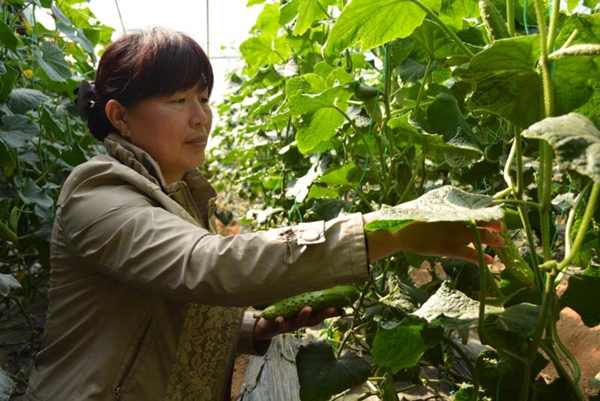 初見徐彩香,她的淺笑舉止都讓人很舒服,家中干凈整潔,大棚里井然有序。什么季節應該給蔬果進行怎樣的管理她都了如指掌。談起創業,這個一直微笑的女人突然沉默了,此時她的思緒正在穿越,回到讓她心酸的10年前。在發展蔬菜大棚之前,徐彩香是村里一名養殖戶,家里養有100多頭豬,以此來供養兒子上學。萬事開頭難,就在她為這些豬早起晚歸累得疲憊不堪時,2009年養殖的豬感染口蹄疫,全都死了。為了不影響到其他的養殖戶,她連夜將這些豬埋掉。接下來怎么辦呢,錢也賠了,豬也沒了,一夜間,徐彩香愁白了頭。
