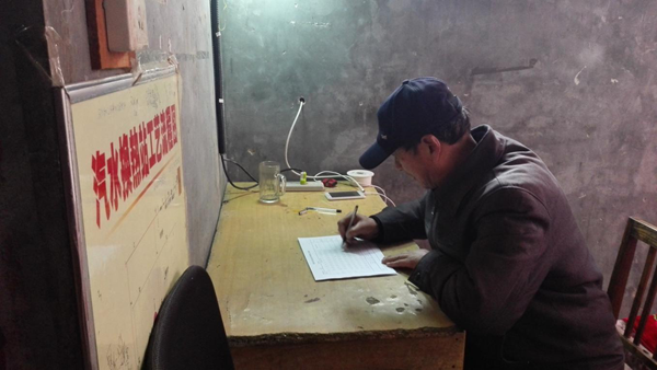 宋月福認真填寫巡線記錄
