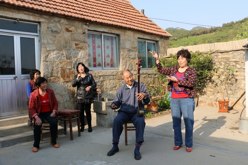 不僅如此,早在2012年,李光平還和羊亭的文藝愛好者湊在一起,復興了幾近失傳的“瞎子唱”,他們將這一民間藝術改名為威海大鼓,進行傳承和發揚。為此,他編寫了大鼓《雨夜電話》,講述一名村委主任關懷空巢老人的感人事跡。他說,現在的村干部不但抓經濟強村富村,還關心空巢老人和弱勢群體,確實造福了一方百姓,他要用藝術的形式來宣傳這些正能量。