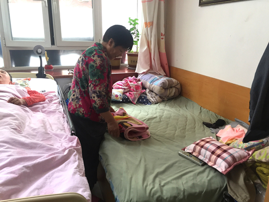 每天定時給華華做流食、喂飯,每隔三個小時要給她翻翻身,遇到女兒“哼哼”的呼喚聲,便知道她可能“不方便”了,要趕緊換衣物……這些瑣碎的事情便是鄒新卿和老伴每天的日常。