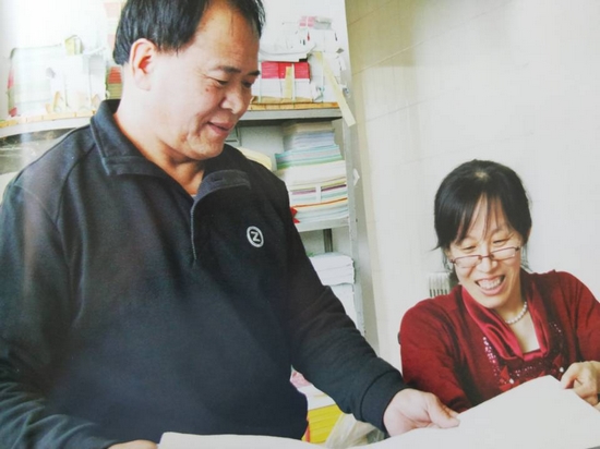 寧志仁(左)與妻子嚴把印刷產品質量