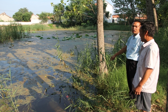 王志福見到一位老人在水里舉著雙手掙扎著,頭頂在水里忽上忽下,情況萬分危急。來不及多想,他扔下電動車,順著坡沿就滑到了水里,這時老人已經(jīng)距離岸邊5米多遠(yuǎn)。王志福知道這個溝塘是村民排澇澆地用的,隔兩年就清淤一次,中間有四、五米深。王志福從小在徒駭河邊上長大,年輕時經(jīng)常去河里游泳捉魚,水性自認(rèn)為可以,只是最近十幾年上了歲數(shù)才不下水了。