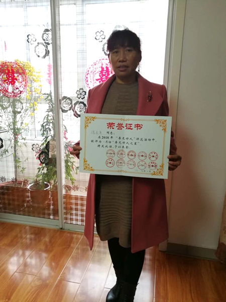 楊秀英獲得2018年10月壽光好人之星榮譽稱號