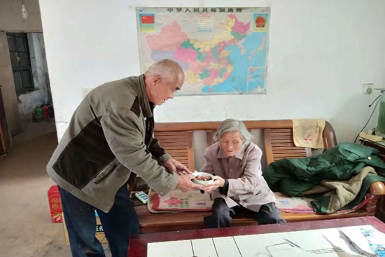 談起李昌水,鄰居們無不對他豎起大拇指,雖然年事已高,但憑著一顆善良心,照顧殘疾癱瘓在床的妻子33年,直至妻子去世,然后又用自己瘦弱的身軀繼續照顧著現在已經90歲的岳母和他9歲的小孫子,默默守護著一家子老小。