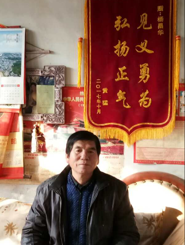 黃某一家為感謝楊昌華老人救命之恩,親自將 “見義勇為弘揚(yáng)正氣”的錦旗送到英雄家,并通過齊魯電視臺小溪辦事攝制組,親自采訪楊昌華老人舍己救人的英雄事跡,對傳播正能量,弘揚(yáng)中華美德,具有積極的推動(dòng)作用。