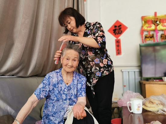如今,鄭秀梅每天的工作就是給老人穿衣、喂飯、散步、洗腳,然后伺候老人安然入睡。