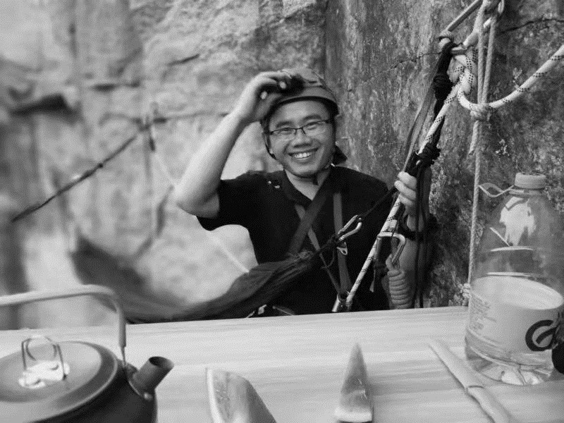 溯溪路途異常險峻,在第三處懸崖位置,尹起賀和隊友挨個護送驢友沿繩索下撤。此時連夜的暴雨已經使得山澗水量迅速增加,溪水變得渾濁,眼看山洪將至。尹起賀和許挺秀臨危不懼,果斷摘下自己身上的安全扣給了被困驢友,讓他們先行撤離,自己卻被轉瞬而至的山洪圍困。