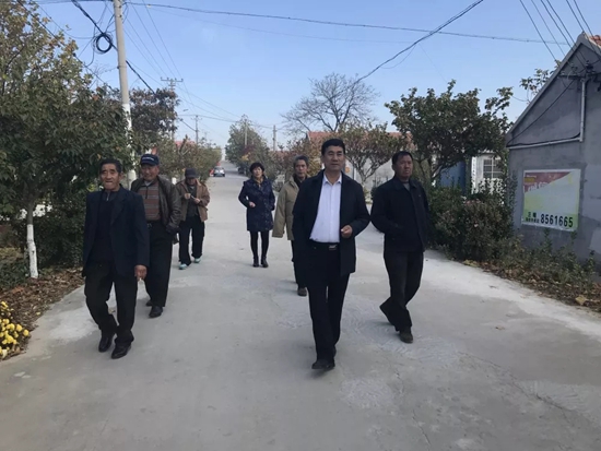 于聲洋(右二)帶領相關村干部察看村衛生環境