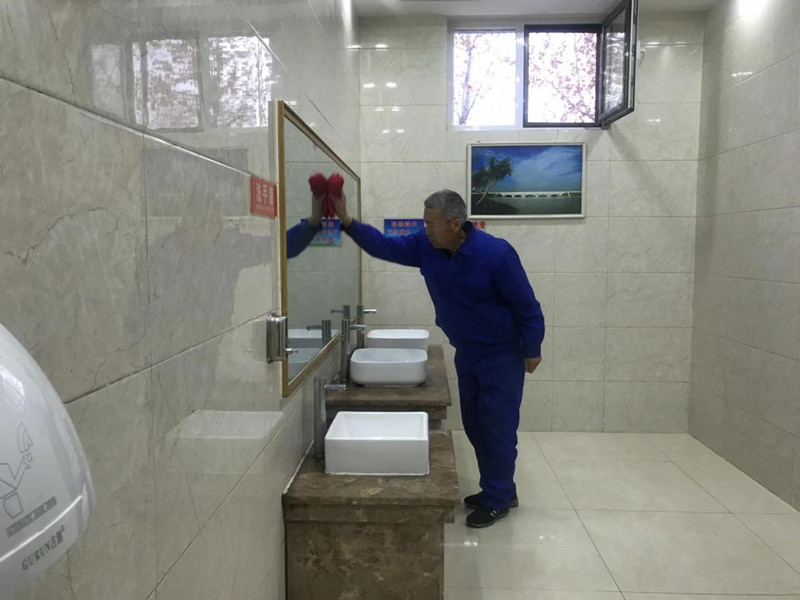 2018年10月,于冰春成為一名普通的公廁保潔員,工作表現優異的他被分配到了人流量較大、地處高青縣千乘湖公園的34號公廁。每天早上5點半,于冰春就開始了一天的工作,清掃地面、擦拭潔具、檢查設施……上午9點以后,來公園游玩的市民逐漸增多,整個白天大部分時間里都處于高峰時段。于冰春雖只是一個保潔員,但工作毫不馬虎拖沓,嚴格按照“跟蹤式服務、一客一保潔”衛生標準,盡可能地保持潔凈,這樣的節奏會持續一整天。“公廁是全天24小時對外開放的,使用這個公廁的人很多,最忙的時段,就沒有一點休息的時間了,要時時刻刻進行保潔。”于冰春說道。到了夜間十點半左右,如廁市民少了很多,一天的工作行將結束,這時的于冰春從里到外將公廁徹底收拾一遍后,才會回到管理間,卸下滿身的疲憊,安安穩穩地睡上一覺。雖然工作忙碌,一日三餐不能按時吃,但是于冰春對這份工作的熱情從未減少過,他已經把這里當成了自己的家。