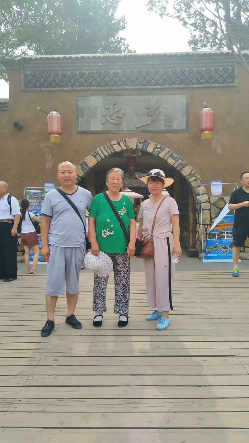 時光荏苒,2011年父親去世后,媽媽至今與他住在一起,媽媽好長一段時間走不出痛苦的氛圍,他擔心她傷心過度,就讓她住在他對面的臥室,隨時關照。他給她買了看戲機,給她下載了許多她愿看的戲曲、電影,還給她買了小喇叭,讓她聽評書、聽廣播,讓她在他們上班時候不感到孤獨。一下班他就陪著媽媽聊一聊一天的事情,轉移一下她的注意力。他和妻子不斷改善生活為媽媽營養身體。他們利用寒暑假、清明節、端午節、五一節、國慶節帶媽媽去天津、河南、山西、江蘇、上海、浙江、陜西、河北、廣西桂林、山東的大小景點去旅游。他總在想,媽媽勞累一生,沒有出過遠門,他要趁著她還走得動,就帶她去看看。每次出門,他總想著給媽媽準備好衣物、藥品、吃的用的,每到景點他總攙著媽媽的手慢慢走,每到一處景點,他總耐心的給她講解。這時,他妻子總是給他女兒說:“你看看你爸爸多么有耐心、多么關心你奶奶,以后,我們老了,你要像你爸爸學習,好好孝敬長輩……”帶媽媽旅游每到一處,總要嘗嘗當地的美食,轉一天下來,媽媽雖然勞累但很開心。媽媽開心的樣子是他們作為兒女的最大安慰。