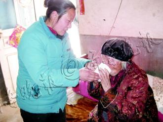“現在家中有婆婆、媽媽和三叔公,媽媽有時候也會到哥哥家中過一段時間。爸爸去世前,也經常和我們一起住!敝x紹愛說,有很多人不理解她,經常勸她說,自己的公公婆婆養就養了,二叔公和三叔公沒義務養,她家又不是養老院,沒有必要養!拔矣X得做人得憑著良心,我并不是為了別人說我好說我孝順才這樣做的,父母生我養我,公公、婆婆、叔叔是我至親,贍養、照顧他們是應該的!敝x紹愛說,她每天早上4點鐘起床,起床后她悄悄地挨屋端屎倒尿收拾衛生,之后做早飯,接著伺候婆婆穿衣梳洗,然后喂飯、吃藥。白天有時間她就做點手工活,一天掙十幾塊錢補貼家用,每天晚上11點之前沒上過床。