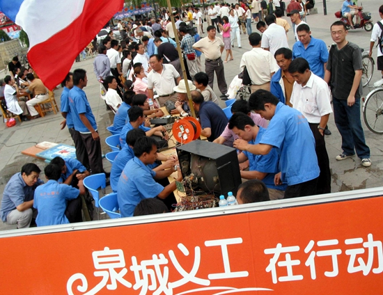 泉城義工在漢旺鎮(zhèn)參加救援