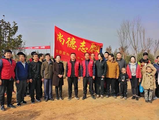李金華(左一)參與單位植樹活動