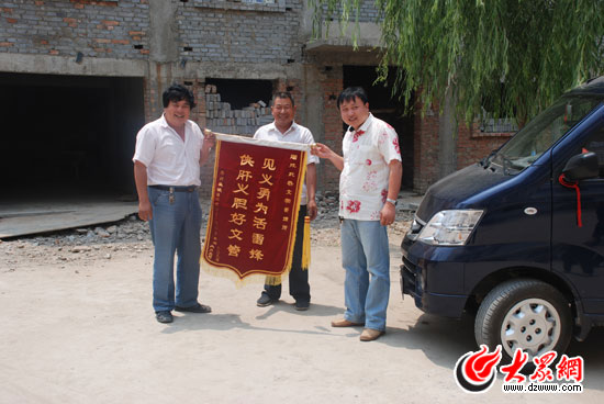 2009年祝亞丁因為見義勇為接受錦旗