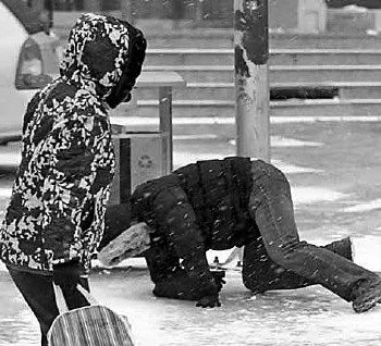 雨雪天氣摔倒時(shí),年輕人容易拉傷韌帶! (資料片)