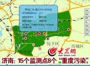 濟南市環保局有關人士特別提示,查詢平臺中,每個小圓點代表一個監測點位,將鼠標移至點位即顯示相應查詢內容,點擊出現的信息對...