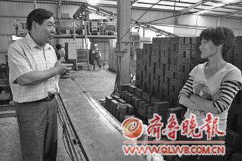 ◤16日,宋茂勝在磚廠詢問工人工作和生活情況。