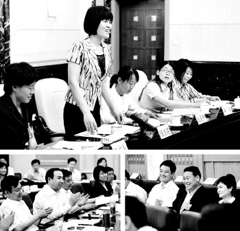 下右圖:臨沂團代表在討論中時聞笑聲。