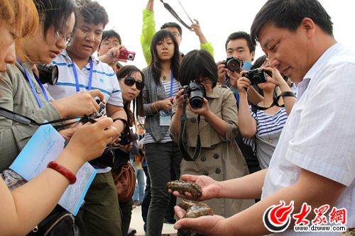 大眾網東營5月15日訊(記者 馬鑫)15日上午,科學發展新山東——“魯花杯”第八屆網絡媒體山東行東線采訪團來到東營現代生態漁業示范區進行采訪。大片的養殖區連綿不絕,肥肥的海參隨處可見……隨著“藍黃”開發戰略的實施,這片昔日的鹽堿灘變成了藍色的“海上牧場”,成為東營藍色經濟的“聚寶盆”。