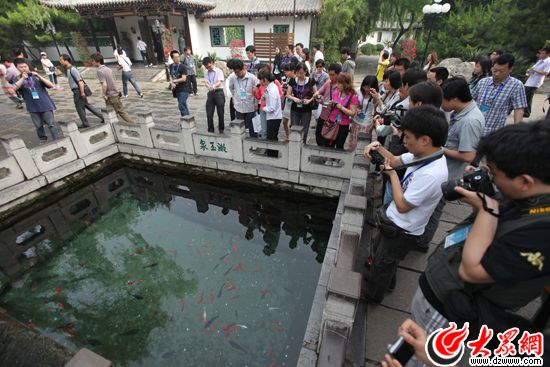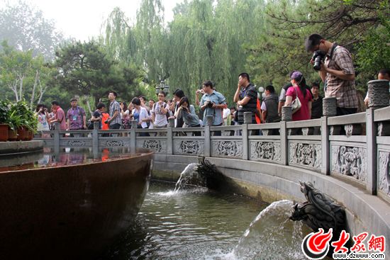 大眾網(wǎng)濟南5月14日訊(記者 王磊)14日上午,“科學發(fā)展新山東——魯花杯第八屆中國網(wǎng)絡媒體山東行”采訪團來到濟南趵突泉,持續(xù)噴涌8年的趵突泉依然泉涌如注,令采訪團的記者們不時發(fā)出贊嘆。濟南市園林部門的相關負責人表示,在泉水申遺后,未來濟南還將整合三大名勝、四大泉群、河、湖、城等資源,形成“天下第一泉景區(qū)”。