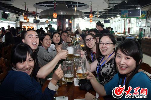 大眾網青島5月18日訊(記者 曹亮 見習記者 吳立州 張帆)18日下午,科學發展新山東——“魯花杯”第八屆中國網絡媒體山東行采訪團來到有著109年歷史的青島啤酒廠采訪,在青啤博物館里了解青島啤酒100多年來的發展歷程,體會 “一杯酒做一百年”的青啤文化。