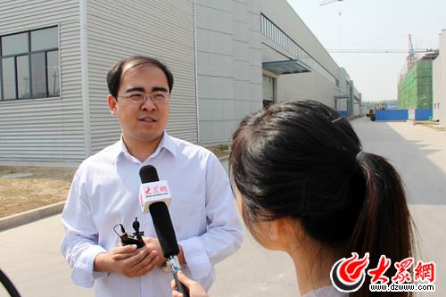 盛瑞傳動股份有限公司副總陳鵬接受大眾網采訪,暢談自主創新歷程。(馬鑫 攝)