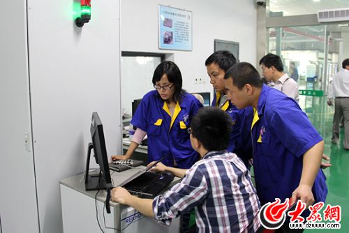 科學發展新山東——“魯花杯”第八屆中國網絡媒體山東行采訪團走進盛瑞傳動。(馬鑫 攝)