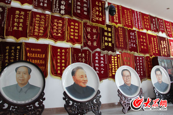 蔬菜大棚技術傳遍中國,農(nóng)民兄弟不忘三元朱恩情,在展廳里,來自各地的錦旗掛了滿滿一面墻。(馬鑫 攝)