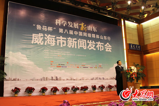 17日上午,科學發展新山東——“魯花杯”第八屆中國網絡媒體山東行東線采訪團到達威海,威海市召開新聞發布會,介紹落實科學發展觀情況。(馬鑫 攝)