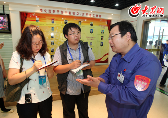 兗礦國(guó)泰化工有限公司黨委書記王天峰接受采訪團(tuán)大眾日?qǐng)?bào)記者、大眾網(wǎng)記者采訪。(盛堃 攝影)