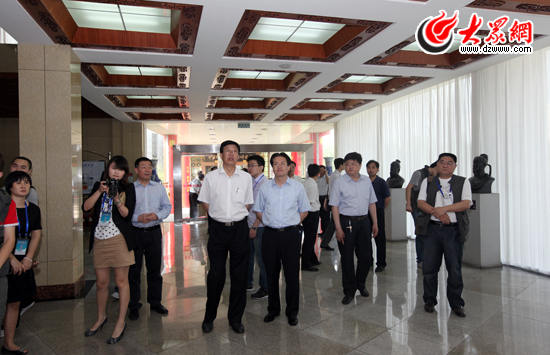 采訪團領(lǐng)導和記者一同參觀中國阿膠博物館。(盛堃 攝影)