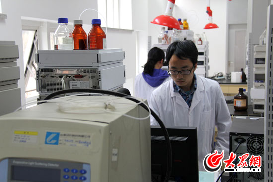 下午,采訪團(tuán)到達(dá)山東國際生物科技園,綜合科研大樓里安靜整潔,工作人員身穿白色的工作服,正在實(shí)驗(yàn)室里緊張而有序地工作。實(shí)驗(yàn)室門外的洗眼器和淋浴吸引了記者們的注意,當(dāng)大家研究這個設(shè)備的功能時(shí),接待專員崔蘇楠向大家解釋說,如果工作人員在實(shí)驗(yàn)過程中眼睛被化學(xué)藥品灼傷,可迅速地在附近找到這個設(shè)備進(jìn)行簡單處理,為去醫(yī)院做進(jìn)一步治療爭取時(shí)間。