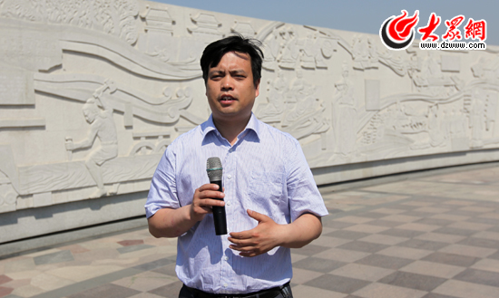 棗莊市中區區委常委、宣傳部長王光明介紹東湖公園(全民健身中心)相關情況。(盛堃 攝影)