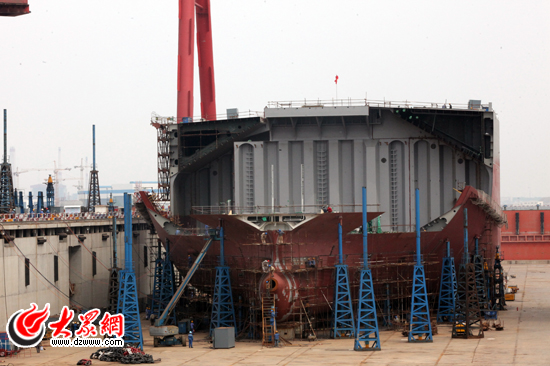對眾多記者而言,坐船已經不再稀奇,但走進船舶工廠觀看一艘艘貨輪、游輪如何制造卻極為新鮮。“這是我們50萬噸的船屋,現在正在制造兩艘載重18萬噸的貨輪。”北川重工總經辦行政助理申震指著近十米深的船塢告訴記者。