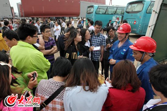 今天上午,科學發展新山東——“魯花杯”第八屆中國網絡媒體山東行采訪團來到青島北海船舶重工有限責任公司。(盛堃 攝影)