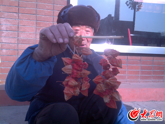 這是老人采摘的紅姑娘,老人說能治咳嗽。(韋輝 攝)