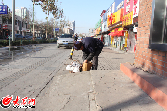 上午9點(diǎn)30分,經(jīng)過(guò)4個(gè)小時(shí)的行程,老人來(lái)到擺攤的地方,文化東路六乃喜飯店門(mén)口。