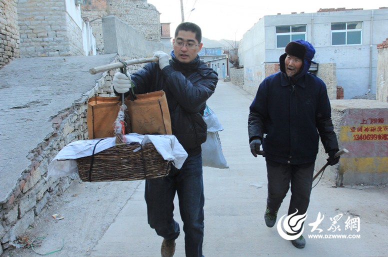 在一段平路上,記者感受了一下老人的擔子