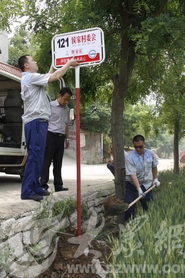 今天中午,隨著侯家村委會的站牌安裝在了侯家村村口,121路公交沿線的28個站點的公交站牌安裝完畢。記者 張帆 攝
