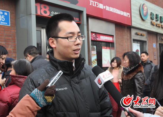 為了獻一份愛心,凌律師特意坐車從舜耕山莊來到了文化東路,下午2點就等在了六乃喜門口!拔以谖⒉┥纤叫臔大眾網(wǎng)了,不過怕來晚了買不到,還是自己跑一趟!彼f,最初知道“山貨大爺”是通過微博,這次是從@大眾網(wǎng) 上看到大眾網(wǎng)發(fā)布的“山貨團購”愛心活動。“我覺得這活動十分好,就想過來支持一下‘山貨大爺’。正好今天下午有時間,就趕過來了。”